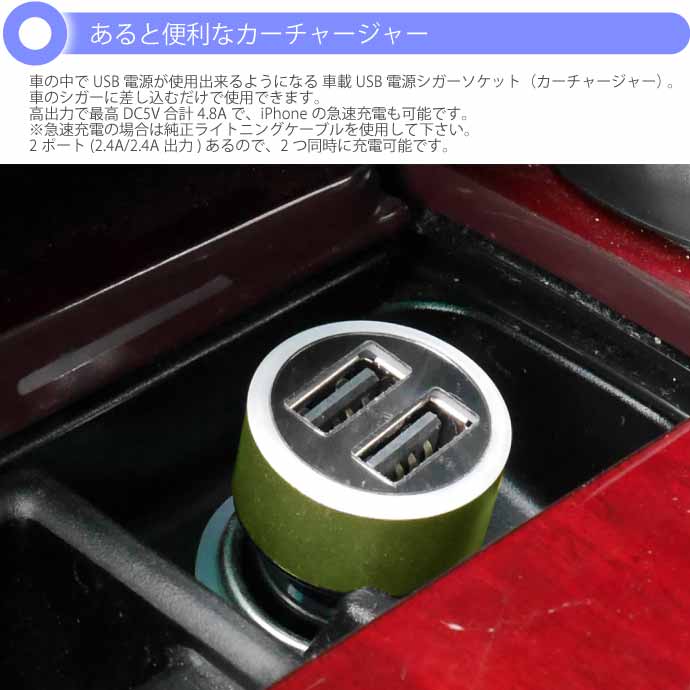 DC12V専用 高出力 2連 USBポート電源 シガーソケット 車の中でUSB電源が使用出来るようになる 車載 USB電源シガーソケット(カーチャージャー) です。