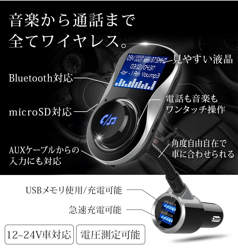 これ1台で音楽・充電・ハンズフリー通話すべてをおこなえる、 車載用Bluetoothトランスミッター。