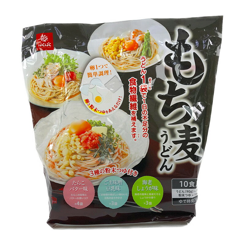 ★2袋セット★はくばく もち麦うどん 3種の粉末つゆ付き 10食入り×2袋卵1つで簡単調理!1日の不足分の食物繊維を補えます♪★嬉しい送料無料★