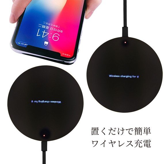※Qiレシーバーを装着したiPhoneはご使用が可能ですQiワイヤレス充電器 急速充電器 充電器の上に置くだけで簡単に充電ができる Qi対応ワイヤレスチャージャーです。